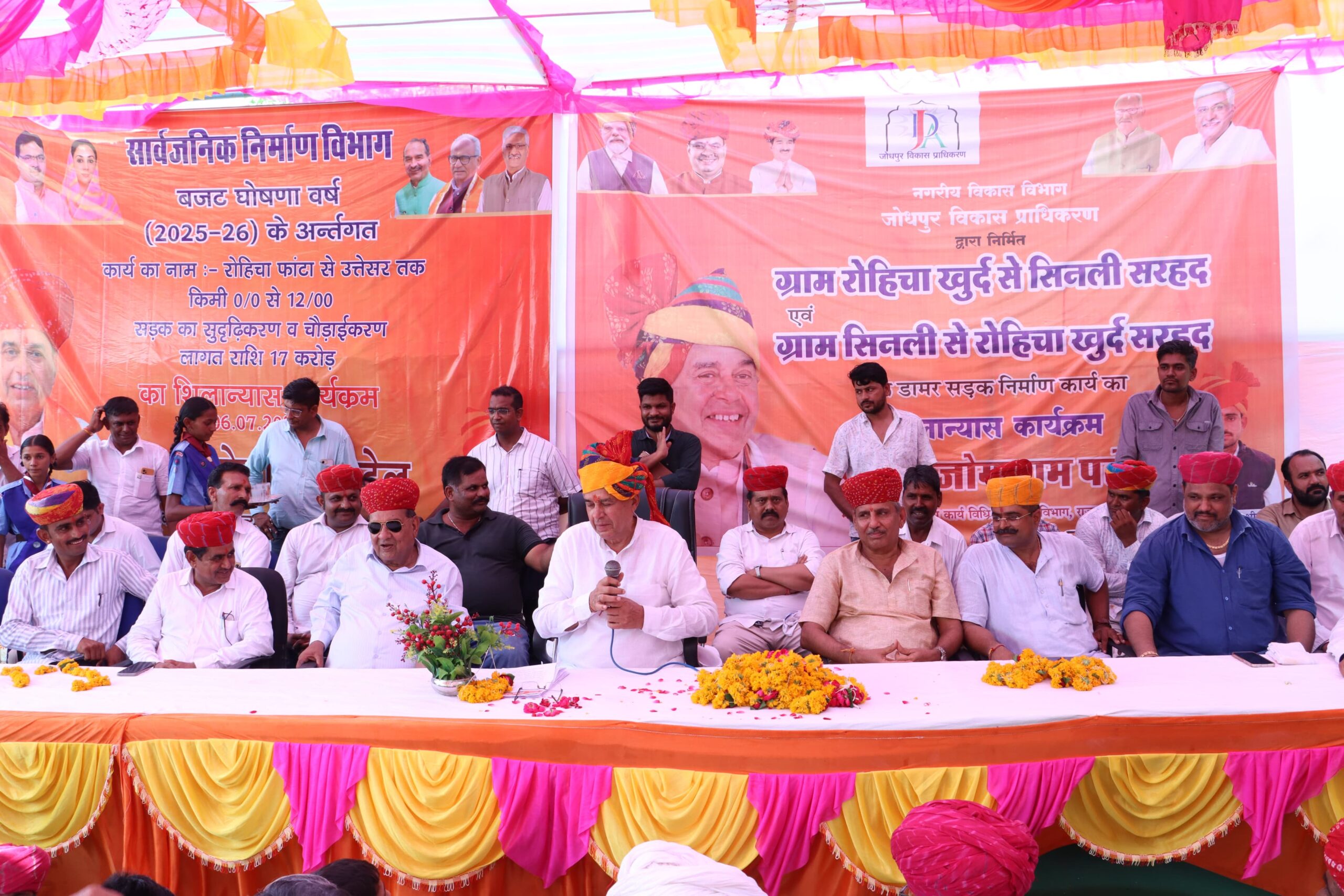 जयपुर ( दिव्य शंखनाद ) 07 जुलाई | संसदीय कार्य विधि एवं विधिक कार्य मंत्री श्री जोगाराम पटेल ने रविवार को जोधपुर में लूणी के रोहिचा खुर्द में सार्वजनिक निर्माण विभाग एवं जोधपुर विकास प्राधिकरण के 24 करोड़ 82 लाख 83 हजार रूपये के सड़क निर्माण कार्यों का विधिवत शिलान्यास किया और जनसभा को संबोधित किया।