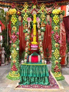 सांयकाल श्रीजी प्रभु के प्रतिनिधि स्वरूप श्री मदन मोहन लाल प्रभु को फल फूल के हिंडोलने में डॉल तिबारी एवं कमल चौक में श्रावण की अद्भुत छटा के मध्य फल फूल के सुंदर हिंडोलने में झूलाया गया और वही श्रीजी प्रभु के गोद के ठाकुर जी श्री लाडले लाल श्री नवनीत प्रिया जी को बगीचे में सुंदर अद्भुत सजावट के मध्य फल फूल के हिंडोले में मुखिया जी द्वारा झुलाया गया ।