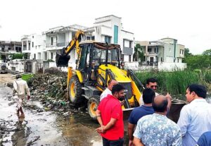 राजसमंद ( दिव्यशंखनाद ) 24 जुलाई | बीते दिनों हुई अतिवृष्टि के कारण तालेड़ी नदी के आसपास की कॉलोनियों एवं खेतों में जलभराव की स्थिति उत्पन्न हो गई थी, जिसको देखते हुए जिला कलक्टर श्री अरुण कुमार हसीजा द्वारा तालेड़ी नदी में अवरोध हटाकर गहराई बढ़ाने हेतु निर्देश प्रदान किए गए। इन निर्देशों की पालना में नगर परिषद राजसमंद ने सफाई एवं खुदाई अभियान का शुभारंभ किया।