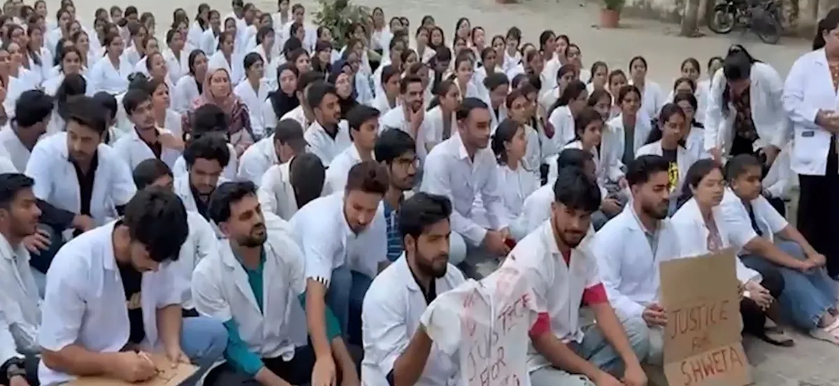 पेसेफिक डेंटल कॉलेज में शुक्रवार सुबह छात्रों ने श्वेता की आत्महत्या के विरोध में प्रदर्शन किया और न्याय की मांग की।