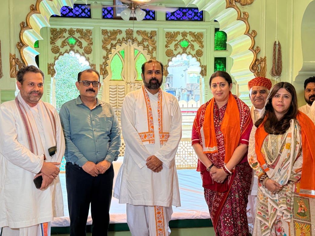 नाथद्वारा ( दिव्य शंखनाद ) 27 जुलाई | पूर्व केन्द्रीय मंत्री स्मृति ईरानी ने रविवार को पुष्टिमार्ग की प्रधानपीठ श्रीनाथजी मंदिर में श्रीजी प्रभु के दर्शन किए। श्रीजी प्रभु के उत्थापन झांकी के दर्शन किए। इस दौरान उनके साथ सास भी कभी बहू थी कि निर्माता एकता कपूर भी मौजूद थी ।