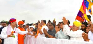 जयपुर ( दिव्य शंखनाद ) 31 जुलाई। मुख्यमंत्री श्री भजनलाल शर्मा ने गुरूवार को एक दिवसीय जैसलमेर यात्रा के दौरान रामदेवरा में बाबा रामदेव पैनोरमा से बाबा रामदेव मंदिर तक पैदल यात्रा की। श्री शर्मा ने इस पदयात्रा के दौरान श्रद्धालुओं से आत्मीयता से मुलाकात की। श्रद्धालु भी अपने बीच मुख्यमंत्री को पाकर बेहद उत्साहित नजर आए।