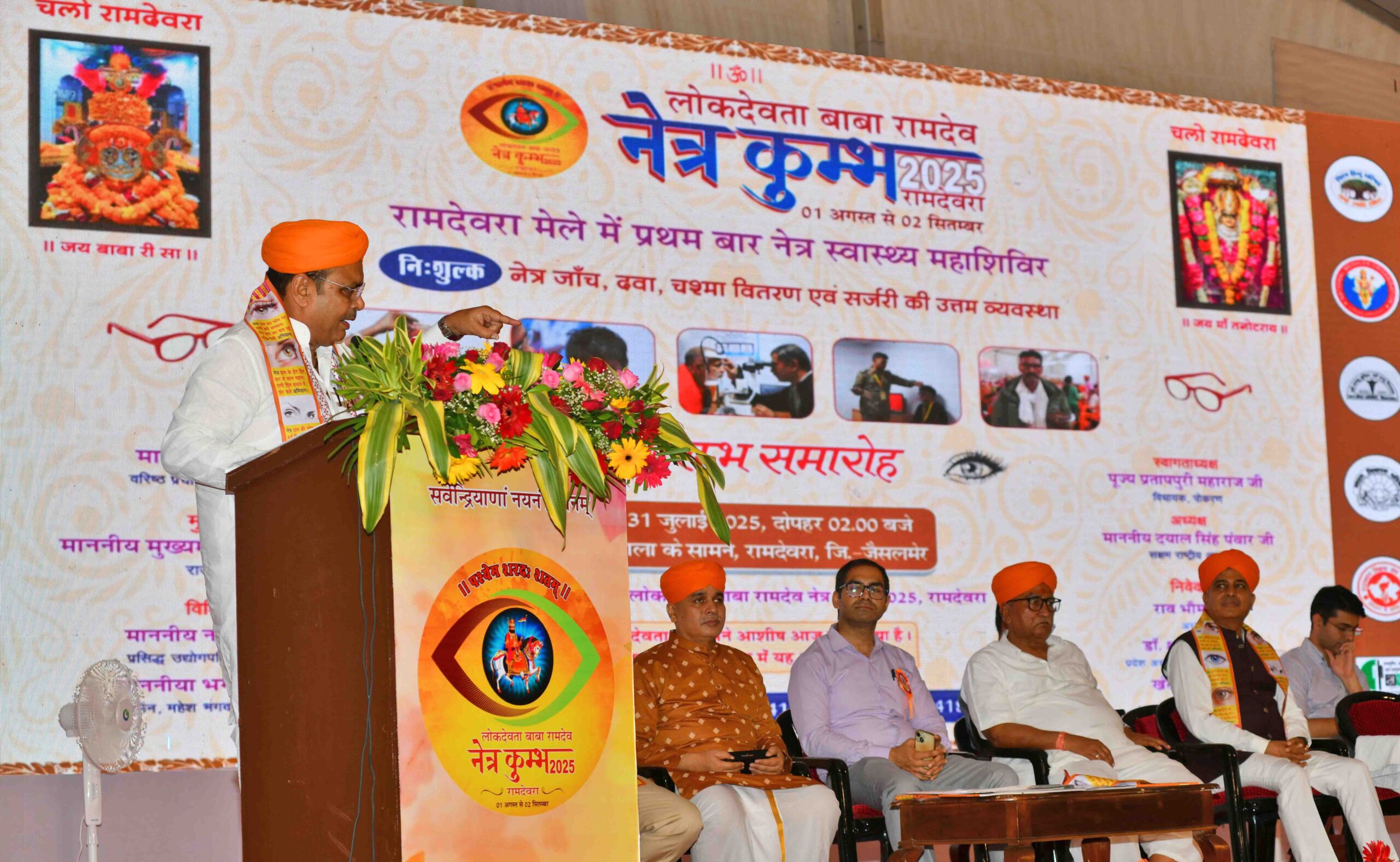 श्री शर्मा ने कहा कि हमारी संस्कृति एवं त्योहारों में सेवा का भाव सर्वोपरि है। उन्होंने कहा कि लोकदेवता बाबा रामदेव जी के मेले के शुभ अवसर पर आंखों के इलाज के लिए महाशिविर का आयोजन किया जा रहा है। 1 अगस्त से 2 सितम्बर तक चलने वाले इस शिविर में सवा लाख से अधिक श्रद्धालुओं की आंखों की निःशुल्क जांच की जाएगी। साथ ही, 11 हजार से अधिक श्रद्धालुओं की आंखों का निःशुल्क ऑपरेशन उनके निवास के नजदीक चिकित्सालय में कराने की व्यवस्था की जाएगी। उन्होंने कहा कि यह आयोजन अंत्योदय के संकल्प को साकार करने की दिशा में अहम कदम है।