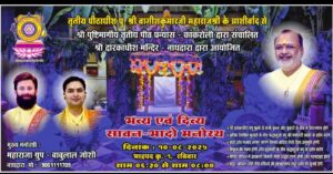 नाथद्वारा ( दिव्यशंखनाद ) 08 अगस्त| तृतीय पीठाधीश पु.वागीशकुमारजी के आशीर्वाद से श्री पुष्टिमार्गीय तृतीय पीठ प्रन्यास कांकरोली द्वारा संचालित श्री द्वारकाधीश मंदिर नाथद्वारा में भव्य सावन भादो मनोरथ आयोजित किया जा रहा है। इस मनोरथ के दर्शन भाद्रपद कृष्णपक्ष एकम रविवार 10 अगस्त को शाम 6:30 बजे से 8:00 तक होंगे।