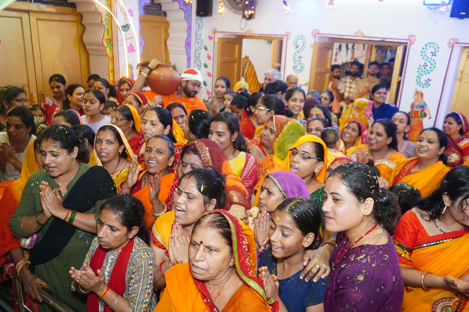 मंदिर तिवारी में सोने का पलना पधराया गया और पलना में श्रीलालन को विराजमान कर नन्द महोत्सव में नन्द के घर आनंद भयो,जय कन्हैया लाल की गूंज के साथ सारे भक्तजन श्री प्रभु के जन्म की खुशी में हल्दी मिश्रित दुध दहीं को उछाल कर इस महोत्सव को परवान चढ़ा रहे थे और एक दूसरे गले लगकर खुशियां बांट रहे थे। “नंदबाबा लड्डू दो लड्डू दो” के नारे लगा रहे थे। तत्पश्चात नंदबाबाने रतन चौक में उपस्थित दर्शनार्थीयों पर प्रसाद की ब्योछार कर दी। सम्पूर्ण रतन चौक श्री प्रभु की जय घोष के साथ गुंजायमान हो रहा था। दर्शनार्थी बारी-बारी से नन्द महोत्सव के दर्शनों का आनंद लेते रहे। परम आनन्द एवं उत्साह के साथ नन्द-महोत्सव सम्पन्न हुआ।