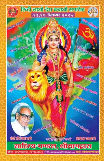 नाथद्वारा ( दिव्य शंखनाद ) 10 सितंबर | हिंदी दिवस पर साहित्य मंडल, श्रीनाथद्वारा का ‘हिंदी लाओ देश बचाओ’ दो दिवसीय समारोह 13 एवं 14 सितंबर को संस्थान के प्रेक्षागार में आयोजित किया जाएगा। संस्था के प्रधानमंत्री श्याम प्रकाश देवपुरा ने बताया कि उपनिषद में विभिन्न साहित्यिक चर्चा, सांस्कृतिक कार्यक्रम, नगर भ्रमण, पुस्तक प्रदर्शनी के साथ-साथ 14 राज्यों के 67 साहित्य मनीषियों को मानद उपाधियों और अलंकरण से सम्मानित किया जाएगा। उन्होंने बताया कि समरोह में राजस्थान सहित उत्तर प्रदेश, हरियाणा, ओडिशा, दिल्ली, महाराष्ट्र, मध्यप्रदेश, कर्नाटक, तमिलनाडु, पोर्टब्लेयर – अंडमान, जम्मू कश्मीर, असम, पश्चिम बंगाल और गुजरात राज्यों साहित्यकार सम्मानित होंगे।