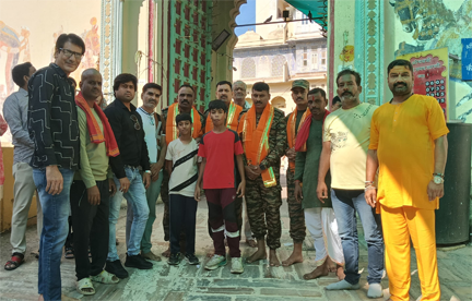 नाथद्वारा ( दिव्यशंखनाद ) 12 सितम्बर | नाथद्वारा से प्रवासरत सेना के जवानों ने आज श्रीनाथ जी की ग्वाल झाँकी के दर्शन किए। जवानों ने दर्शन कर प्रभु की साक्षात कृपा का अनुभव किया और देश कि रक्षा और शांति के लिए शक्ति का आशीर्वाद मांगा और सुदर्शन जी के दर्शन कर स्वयं की सुरक्षा के लिए आशीर्वाद की कामना की। नाथद्वारा के युवाओं की धर्म और देश के प्रति भक्ति और समर्पण की सराहना की।