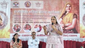 राजसमंद ( दिव्यशंखनाद ) 13 सितंबर। शुक्रवार को राजीविका का महिला संवाद कार्यक्रम निजी रिज़ॉर्ट में रुमा देवी फाउंडेशन के सहयोग से आयोजित हुआ। इस कार्यक्रम में राष्ट्रीय ग्रामीण आजीविका परिषद की राज्य ब्रांड एम्बेसडर एवं राष्ट्रपति के हाथों नारी शक्ति सम्मान से सम्मानित बाड़मेर निवासी रूमा देवी ने राजसमंद जिले की स्वयं सहायता समूह (एसएचजी) की महिलाओं से संवाद कर उन्हें आत्मनिर्भरता और उद्यमशीलता की राह पर आगे बढ़ने के लिए प्रेरित किया। कार्यक्रम में जिला कलक्टर अरुण कुमार हसीजा, अतिरिक्त मुख्य कार्यकारी अधिकारी एवं डीपीएम राजीविका डॉ. सुमन अजमेरा, रूमा देवी फाउंडेशन के सचिव विक्रम सिंह सहित अन्य अधिकारीगण उपस्थित रहे।