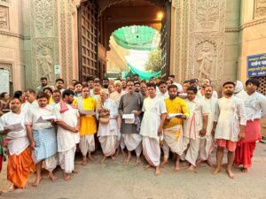 नाथद्वारा ( दिव्यशंखनाद ) 11 अक्टूबर | विश्व प्रसिद्ध पुष्टि मन्दिर श्रीनाथजी मन्दिर, नाथद्वारा मे अन्नकुट की घन की सेवा गो. ति. 108 श्री इन्द्रदमनजी (राकेश जी )महाराजश्री व गो. चि. युवराज 105 विशाल बावा साहब के आज्ञा से दीपावली पर होने वाली अन्नकुट की सेवा के क्रम मे घन की सेवा आरम्भ हुई |
