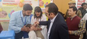 राजसमंद ( दिव्यशंखनाद ) 24 नवम्बर। जिले में पल्स पोलियो महाअभियान का शुभारम्भ जिला कलक्टर अरुण कुमार हसीजा ने किशोर नगर मण्डा स्थित शहरी प्राथमिक स्वास्थ्य केन्द्र पर स्थापित पोलियो बूथ पर नौनिहालो को पोलियो रोधी दवा पिलाकर किया। इस अवसर पर सीएमएचओ डॉ हेमन्त कुमार बिन्दल, चिकित्सा अधिकारी प्रभारी डॉ राष्ट्र सहना आजाद, वरिष्ठ नर्सिंग अधिकारी नानालाल कुमावत सहित विभिन्न गणमान्य नागरिक उपस्थित थे।