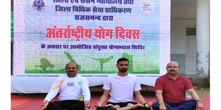 नाथद्वारा (दिव्य शंखनाद)। अध्यक्ष महोदय जिला विधिक सेवा प्राधिकरण, जिला एवं सेशन न्यायाधीश, राजसमन्द अनंत भंडारी के निर्देशानुसार एवं आयुष मंत्रालय द्वारा निर्धारित प्रोटोकॉल के अनुसार अध्यक्ष तालुका विधिक सेवा समिति, अपर जिला एवं सेशन न्यायाधीश नाथद्वारा लक्ष्मीकांत वैष्णव की अध्यक्षता में न्यायालय परिसर, में योग एवं मेडिटेशन शिविर का आयोजन किया गया।